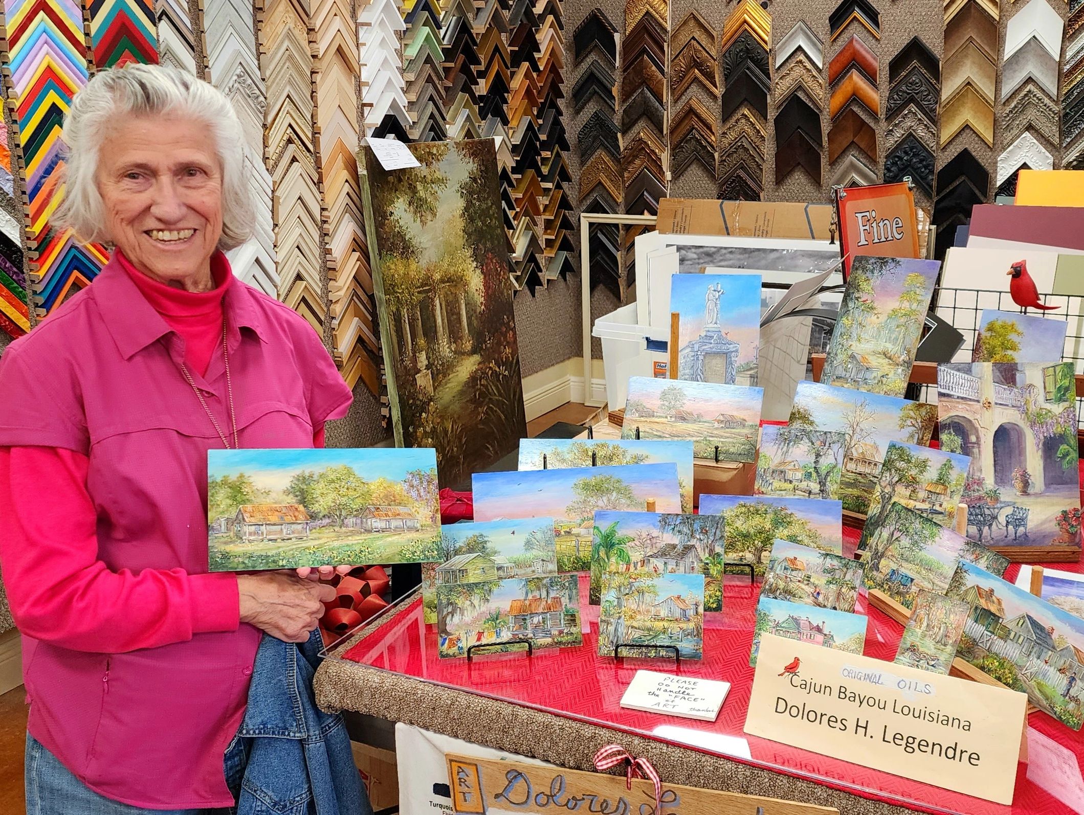 An award winning local artist whose mediums include oils, watercolors, and ink drawings. Her works depict sugar cane and sugar mills, shrimp boats, churches, bayou homes, and plantation homes. Look forward to her work coming back to our shop in the future!